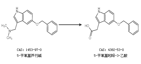 1.通过5-苄氧基芦竹碱合成5-苄氧基吲哚-3-乙酸
