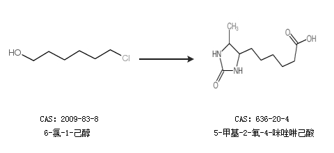 1.通过6-氯-1-己醇合成5-甲基-2-氧-4-咪唑啉己酸