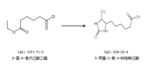 2.通过6-氯-6-氧代己酸乙酯合成5-甲基-2-氧-4-咪唑啉己酸