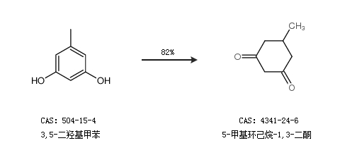 1.通过3,5-二羟基甲苯合成5-甲基环己烷-1,3-二酮,收率约82%;
