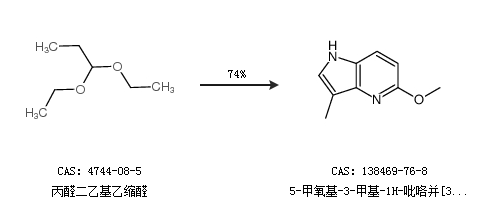 2.通过丙醛二乙基乙缩醛合成5-甲氧基-3-甲基-1H-吡咯并[3,2-b]吡啶,收率约74%;