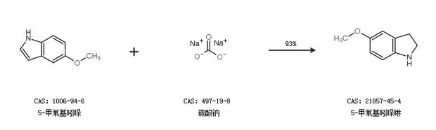 2.通过5-甲氧基吲哚和碳酸钠合成5-甲氧基吲哚啉,收率约93%;