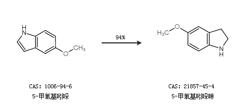 1.通过5-甲氧基吲哚合成5-甲氧基吲哚啉,收率约94%;