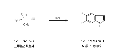 1.通过三甲基乙炔基硅合成5-氯-6-氟吲哚,收率约83%;