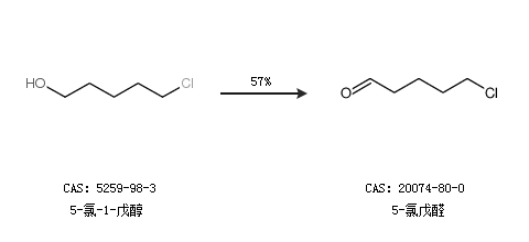2.通过5-氯-1-戊醇合成5-氯戊醛,收率约57%;