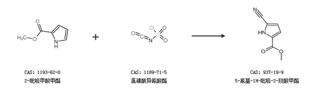 2.通过2-吡咯甲酸甲酯和氯磺酰异氰酸酯合成5-氰基-1H-吡咯-2-羧酸甲酯