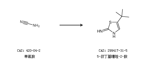 1.通过单氰胺和3,3-二甲基丁醛合成5-叔丁基噻唑-2-胺