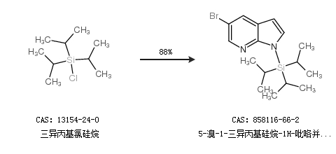 1.通过三异丙基氯硅烷合成5-溴-1-三异丙基硅烷-1H-吡咯并[2,3-b]吡啶,收率约88%;