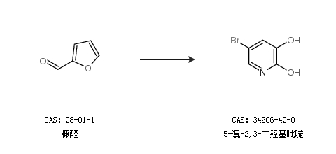 1.通过糠醛合成5-溴-2,3-二羟基吡啶