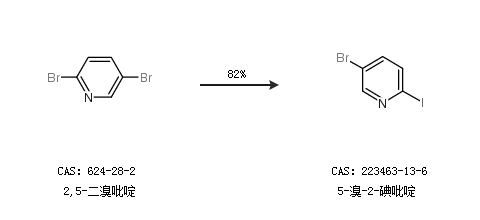 2.通过2,5-二溴吡啶合成5-溴-2-碘吡啶,收率约82%;