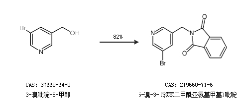 1.通过3-溴吡啶-5-甲醇合成5-溴-3-(邻苯二甲酰亚氨基甲基)吡啶,收率约82%;