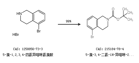 1.通过5-溴-1,2,3,4-四氢异喹啉氢溴酸合成5-溴-3,4-二氢-1H-异喹啉-2-羧酸叔丁酯,收率约99%;