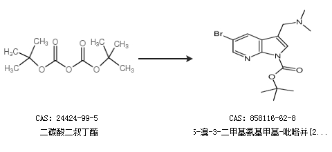 1.通过二碳酸二叔丁酯合成5-溴-3-二甲基氨基甲基-吡咯并[2,3-b]吡啶-1-羧酸叔丁酯