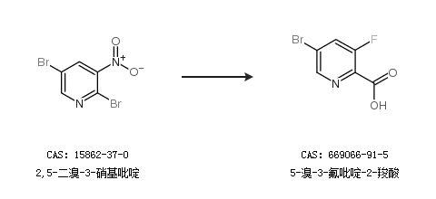 2.通过2,5-二溴-3-硝基吡啶合成5-溴-3-氟吡啶-2-羧酸
