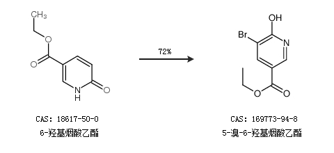 1.通过6-羟基烟酸乙酯合成5-溴-6-羟基烟酸乙酯,收率约72%;