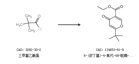 1.通过三甲基乙酰氯合成6-(叔丁基)-4-氧代-4H-吡喃-3-羧酸乙酯,收率约67%;