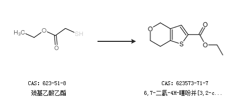 1.通过巯基乙酸乙酯合成6,7-二氢-4H-噻吩并[3,2-c]吡喃-2-羧酸乙酯