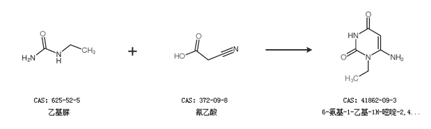 2.通过乙基脲和氰乙酸合成6-氨基-1-乙基-1H-嘧啶-2,4-二酮