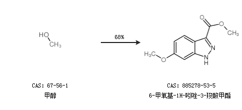 1.通过甲醇合成6-甲氧基-1H-吲唑-3-羧酸甲酯,收率约68%;