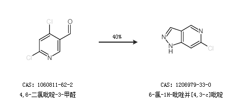 1.通过4,6-二氯吡啶-3-甲醛合成6-氯-1H-吡唑并[4,3-c]吡啶,收率约40%;