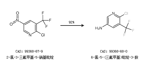 1.通过2-氯-3-三氟甲基-5-硝基吡啶合成6-氯-5-(三氟甲基)吡啶-3-胺,收率约92%;