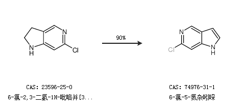 1.通过6-氯-2,3-二氢-1H-吡咯并[3,2-c]吡啶合成6-氯-5-氮杂吲哚,收率约90%;