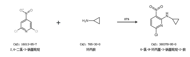 1.通过2,6-二氯-3-硝基吡啶和环丙胺合成6-氯-N-环丙基-3-硝基吡啶-2-胺,收率约87%;