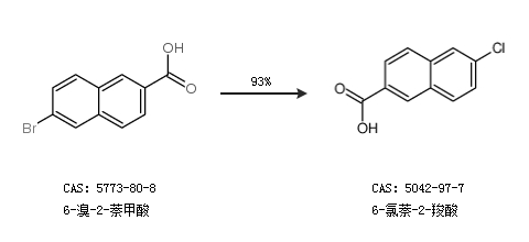 1.通过6-溴-2-萘甲酸合成6-氯萘-2-羧酸,收率约93%;