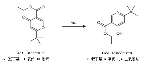 1.通过6-(叔丁基)-4-氧代-4H-吡喃-3-羧酸乙酯合成6-叔丁基-4-氧代-1,4-二氢吡啶-3-羧酸乙酯,收率约78%;