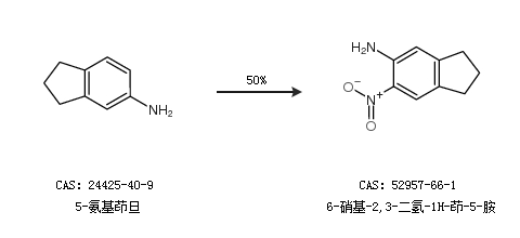 1.通过5-氨基茚旦合成6-硝基-2,3-二氢-1H-茚-5-胺,收率约50%;