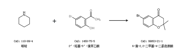 2.通过哌啶和2′-羟基-5′-溴苯乙酮合成6-溴-2,2-二甲基-4-二氢色原酮