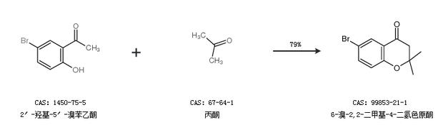 1.通过2′-羟基-5′-溴苯乙酮和丙酮合成6-溴-2,2-二甲基-4-二氢色原酮,收率约79%;