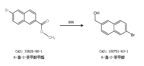 1.通过6-溴-2-萘甲酸甲酯合成6-溴-2-萘甲醇,收率约99%;