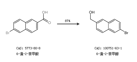 2.通过6-溴-2-萘甲酸合成6-溴-2-萘甲醇,收率约87%;