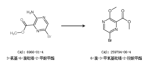 1.通过3-氨基-6-溴吡嗪-2-甲酸甲酯合成6-溴-3-甲氧基吡嗪-2-羧酸甲酯