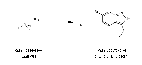 2.通过氟硼酸铵合成6-溴-3-乙基-1H-吲唑,收率约40%;