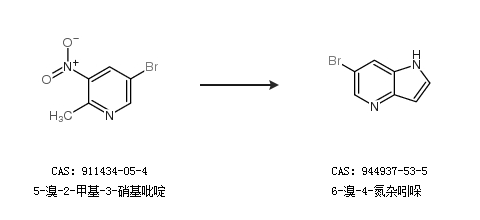 1.通过5-溴-2-甲基-3-硝基吡啶合成6-溴-4-氮杂吲哚