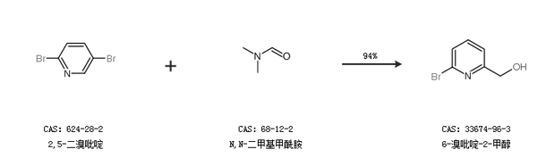 1.通过2,5-二溴吡啶和N,N-二甲基甲酰胺合成6-溴吡啶-2-甲醇,收率约94%;