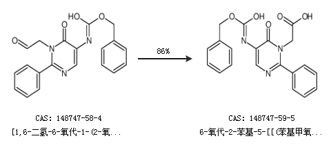 1.通过[1,6-二氢-6-氧代-1-(2-氧代乙基)-2-苯基-5-嘧啶]氨基甲酸苯甲酯合成6-氧代-2-苯基-5-[[(苯基甲氧基)羰基]氨基]-1(6h)-嘧啶乙酸,收率约86%;