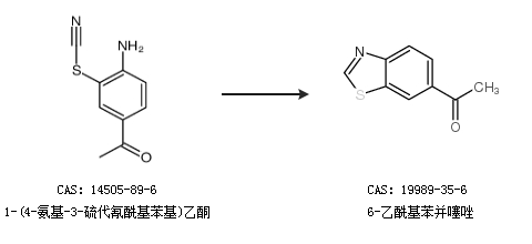 2.通过1-(4-氨基-3-硫代氰酰基苯基)乙酮合成6-乙酰基苯并噻唑