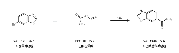 1.通过6-溴苯并噻唑和乙酸乙烯酯合成6-乙酰基苯并噻唑,收率约47%;