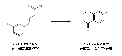 1.通过3-(3-氟苯氧基)丙酸合成7-氟苯并二氢吡喃-4-酮,收率约53%;