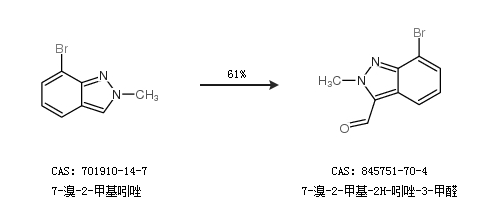 2.通过7-溴-2-甲基吲唑合成7-溴-2-甲基-2H-吲唑-3-甲醛,收率约61%;