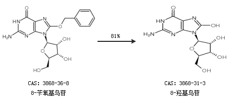 1.通过8-苄氧基鸟苷合成8-羟基鸟苷,收率约81%;