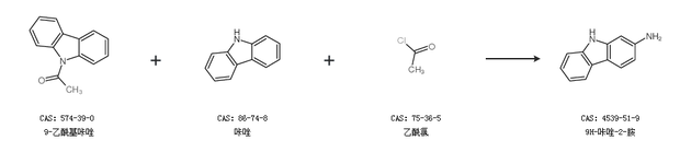 1.通过9-乙酰基咔唑、咔唑和乙酰氯合成9H-咔唑-2-胺