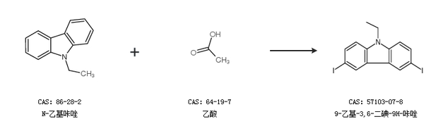 1.通过N-乙基咔唑和乙酸合成9-乙基-3,6-二碘-9H-咔唑