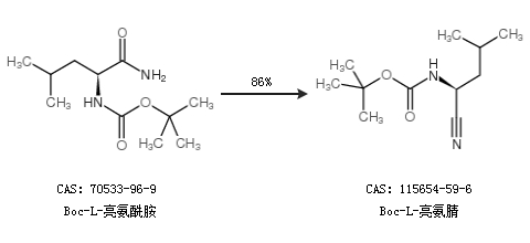 1.通过Boc-L-亮氨酰胺合成Boc-L-亮氨腈,收率约86%;