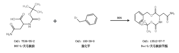 1.通过BOC-L-天冬酰胺和溴化苄合成Boc-L-天冬酰胺苄酯,收率约86%;