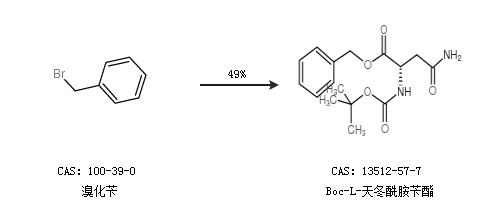 2.通过溴化苄合成Boc-L-天冬酰胺苄酯,收率约49%;