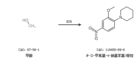 1.通过甲醇合成N-(2-甲氧基-4-硝基苯基)哌啶,收率约82%;